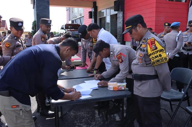 MERANTI, VokalOnline.Com - Kapolres Kepulauan Meranti, Polda Riau, AKBP Andi Yul LTG SH SIk MH, Rabu (25/10/2023) pagi, melakukan pengecekan terhadap personel pelaksana Operasi Mantab Brata (OMB) Lancang Kuning dalam rangka pengamanan tahapan Pemilu tahun 2024.