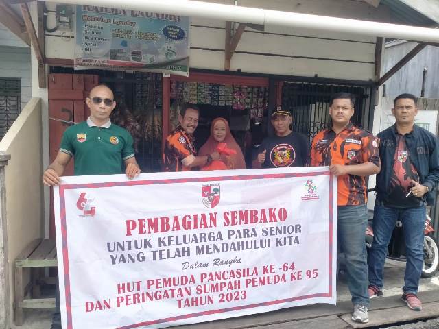 Meranti, VokalOnline.Com - Dalam Rangka HUT Pemuda Pancasila Ke 64 dan Peringatan Sumpah Pemuda 95 Tahun 2023 Pemuda Pancasila mengelar Pembagian Sembako Kepada Keluarga Pemuda Pancasila yang telah meninggal dunia berjasa di Pemuda Pancasila Minggu (29/10/2023).